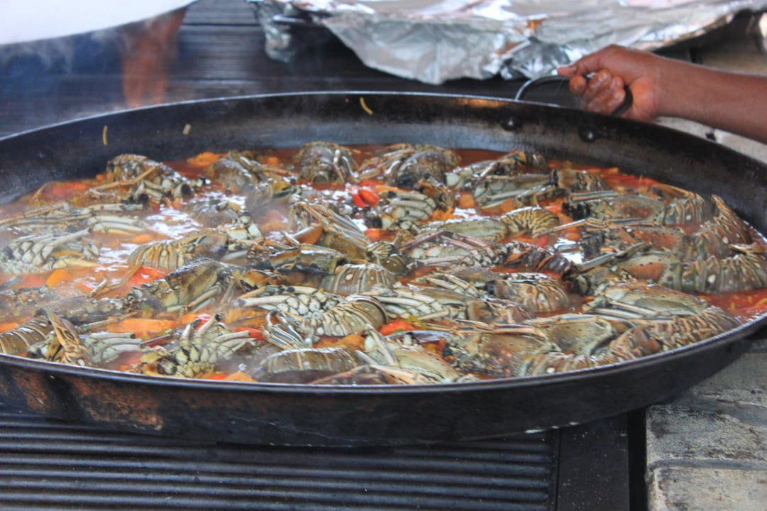Paella am Strand-Grill wie lecker