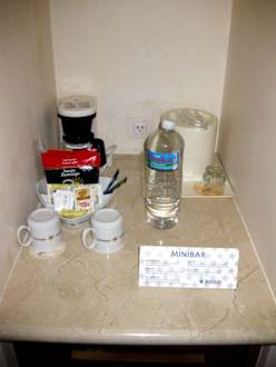 MinibarMinibar mit Kaffeemaschine, verschiedene Sorten an Tees & Kaffees