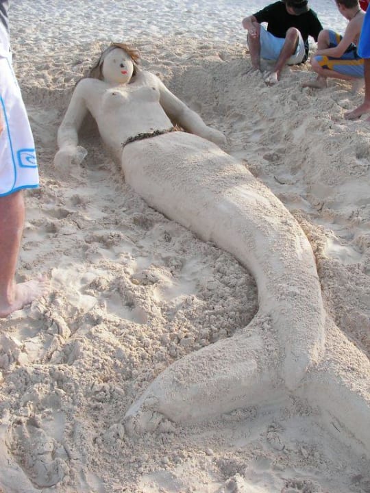 StrandnixeHier hat sich jemand in stundenlanger Arbeit viel Mühe gemacht und eine schöne Strandnixe gezaubert.