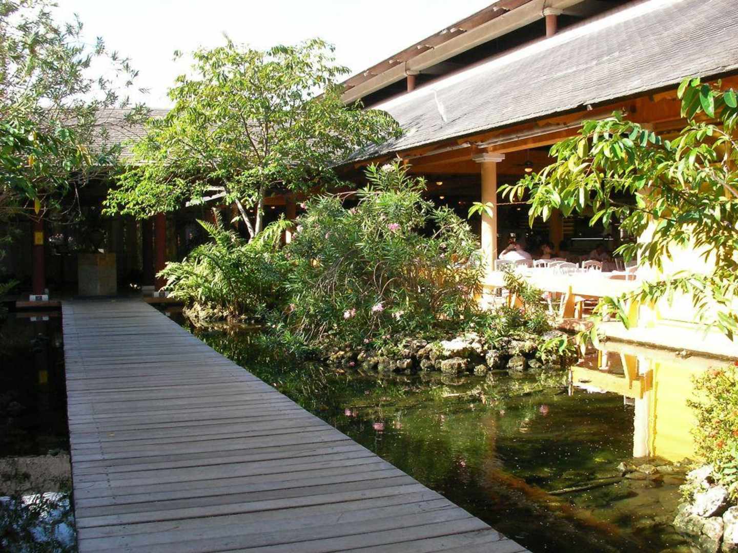 Steg zum RestaurantDieser Steg führt über Teiche zum Restaurant im Punta Cana nach rechts und Dominicana nach links