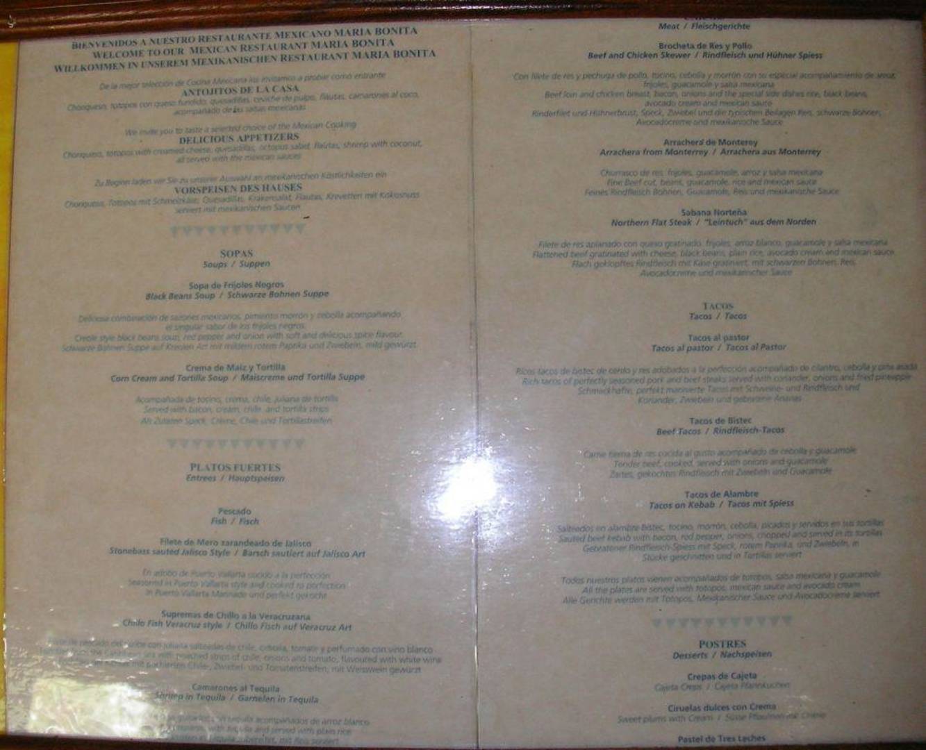 Speisekarte MexikanerSpeisekarte des Mexikaners "La Maria Bonita"