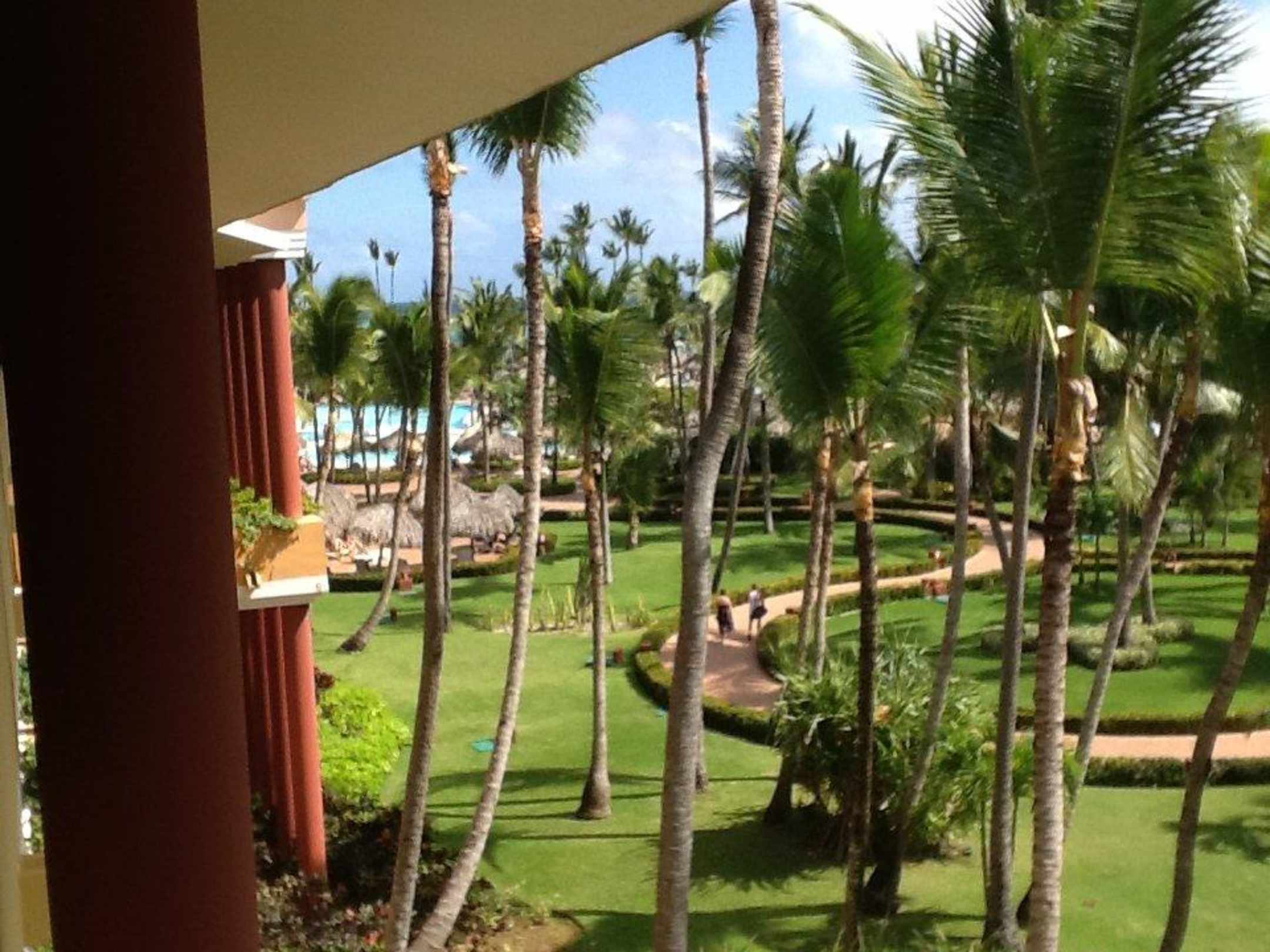 Vom Zimmer auf den Garten und dem Pool gesehen