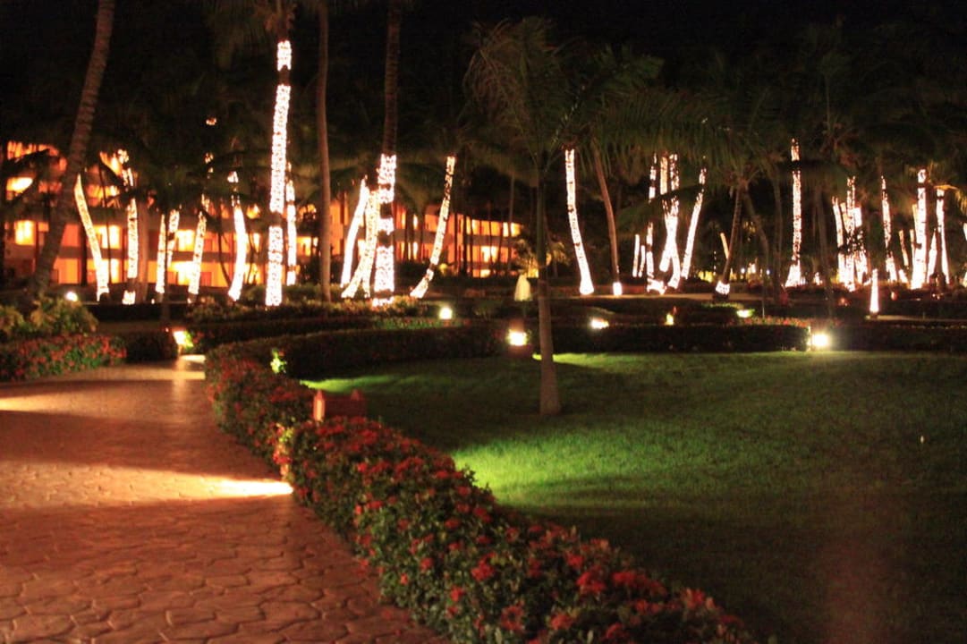 Garten mit Weihnachtsbeleuchtung