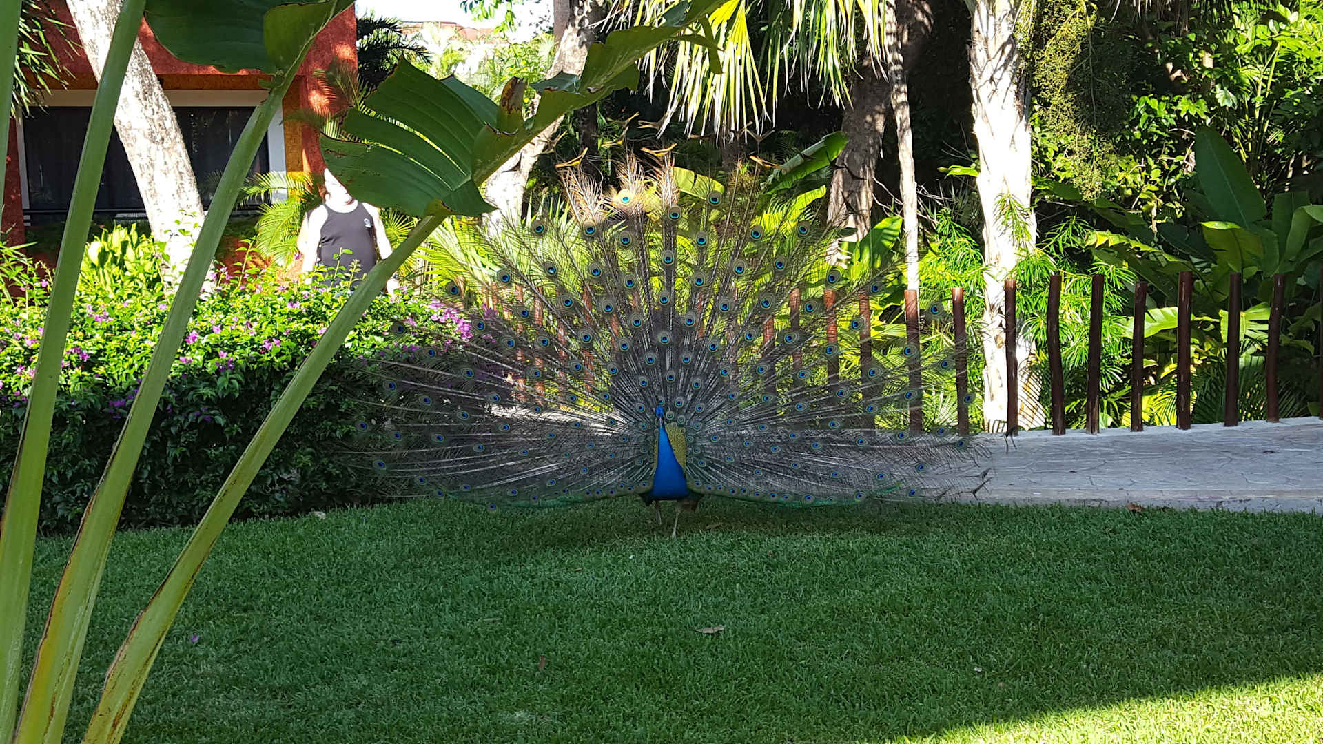 Pfau in Gartenanlage