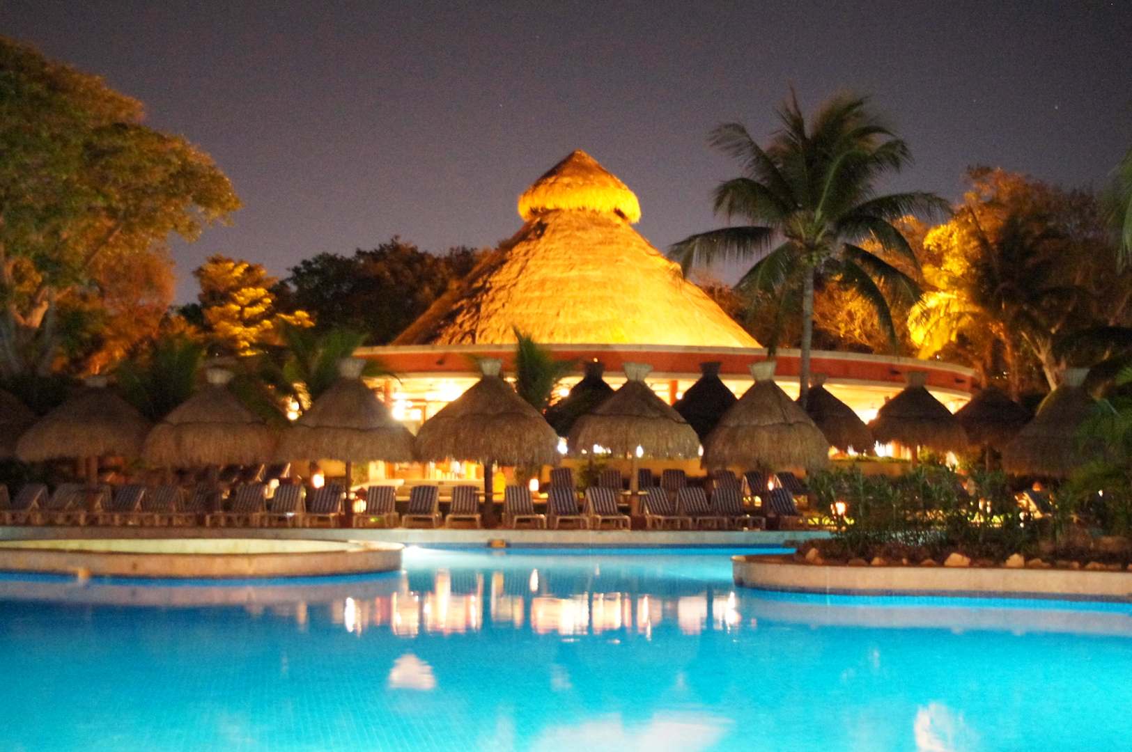 Die Poolanlage bei Nacht