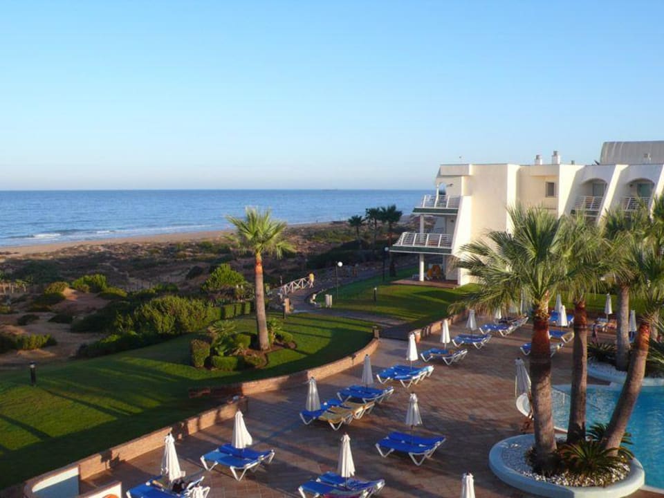 Blick vom HotelzimmerBlick auf den kleinen Meerwasserpool und das Meer im Iberostar Royal Andalus in Novo Sancti Petri an der Costa De La Luz