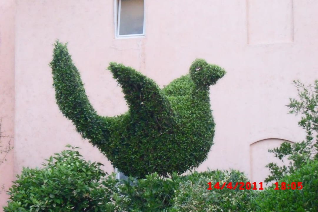Du hast wohl einen Vogel!Von diesen Tiermotiven, die aus den Hecken geschnitten wurden, gibt es Dutzende in der gesamten Garten-anlage.