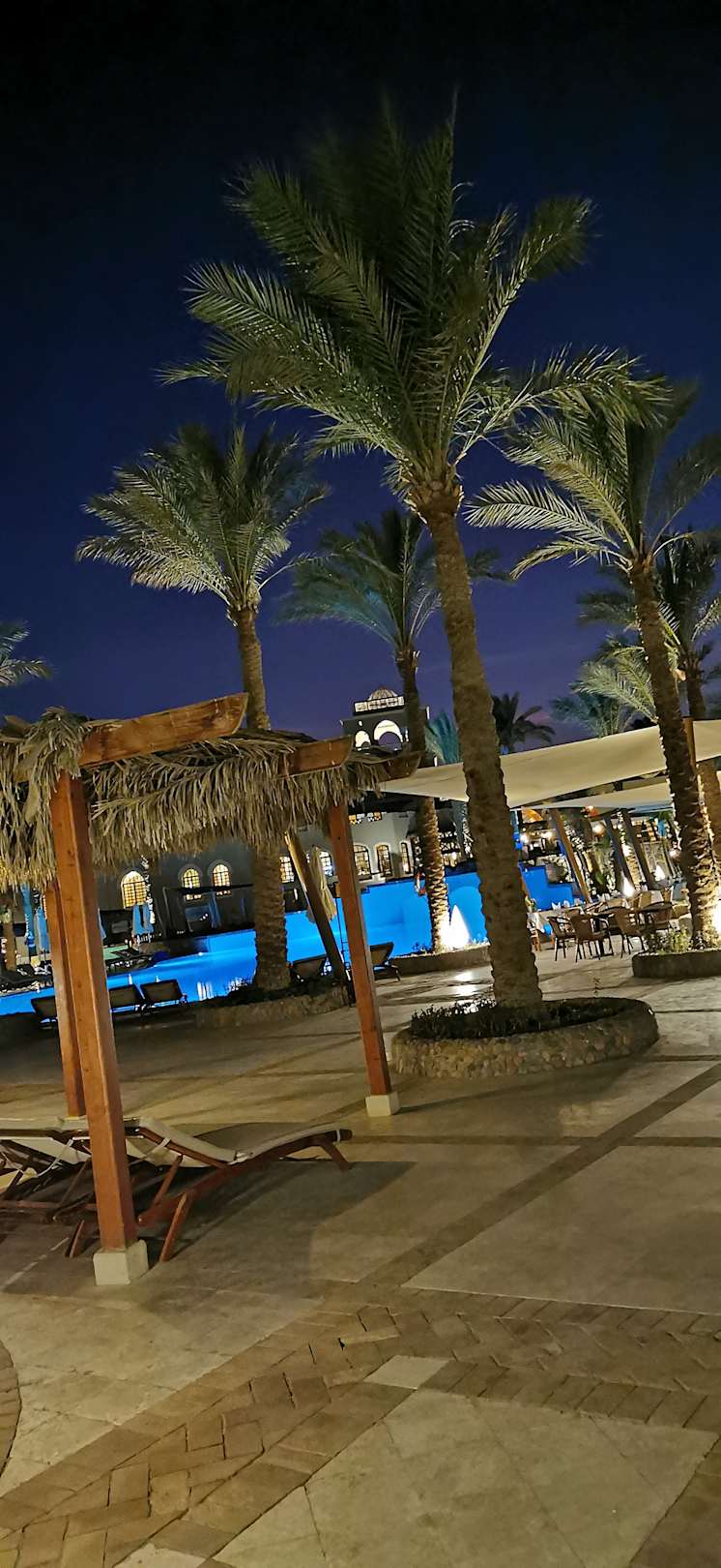 Die Poolanlage bei Nacht
