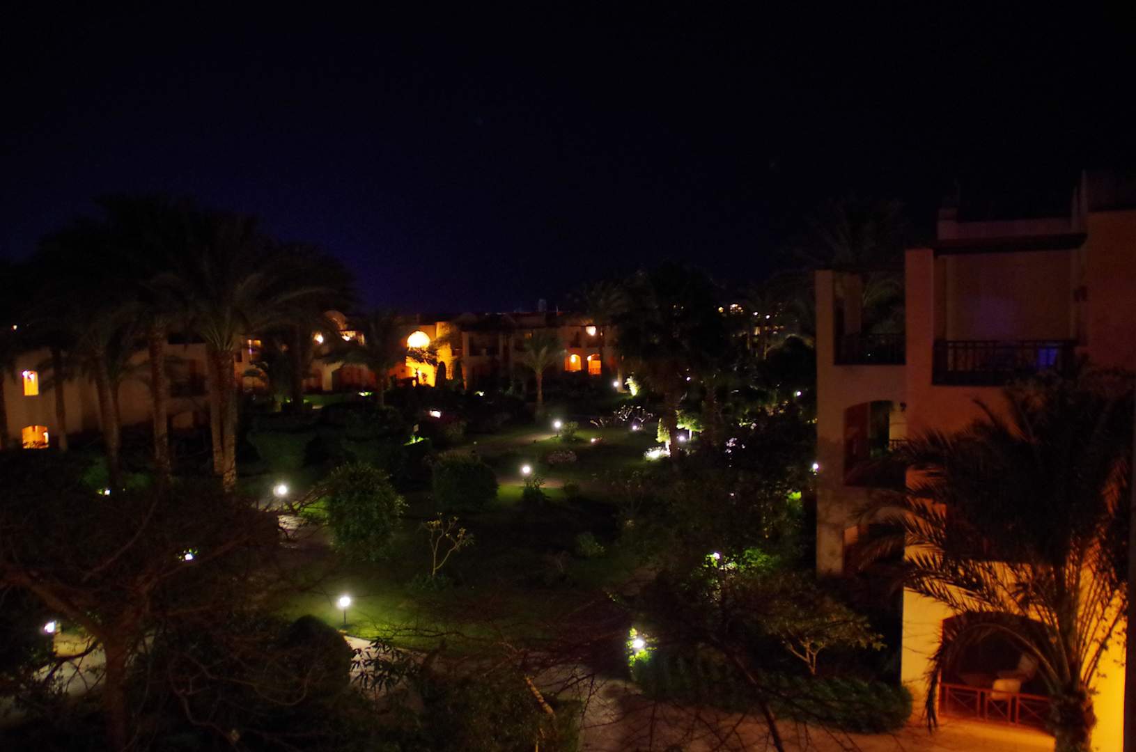 Blick vom Zimmerbalkon bei Nacht