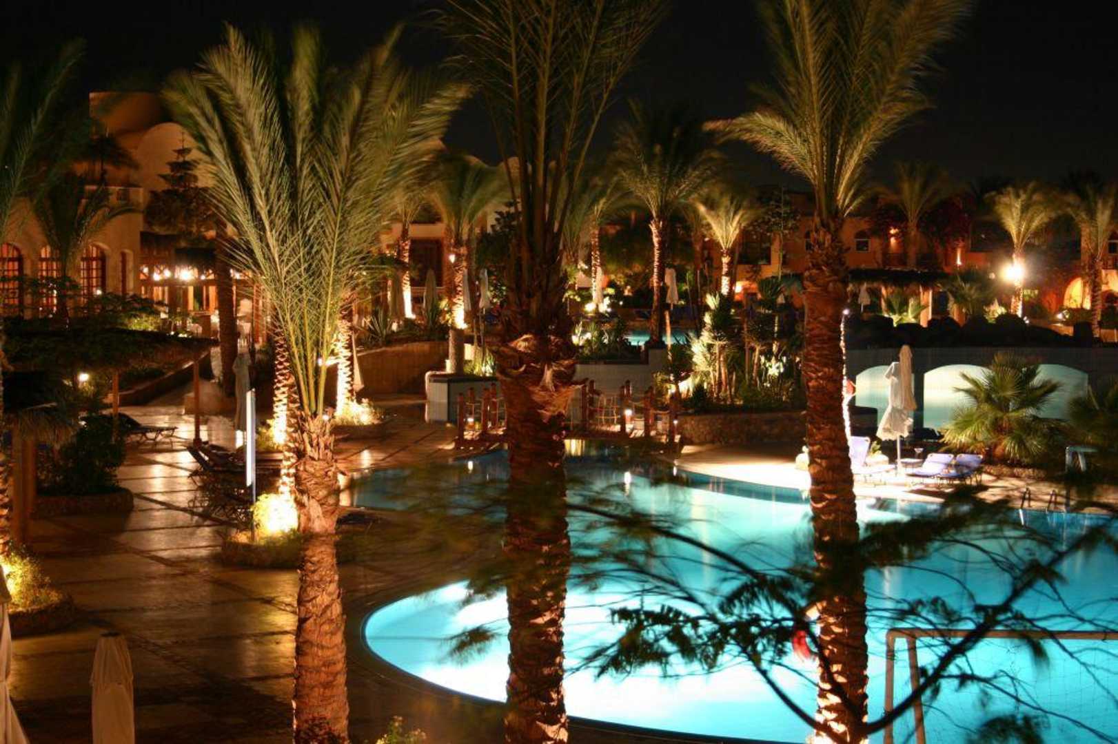 Hotelanlage am Abend