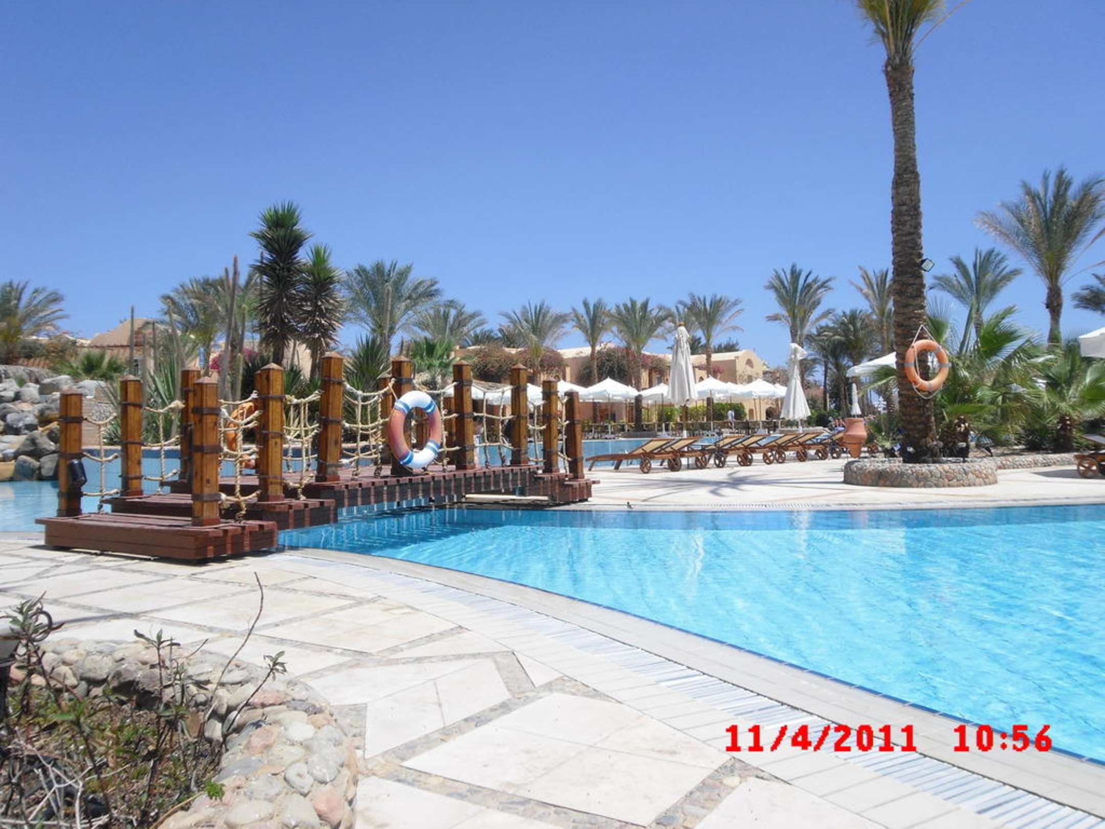 Von Pool zu PoolEine kleine Brücke, die zwei Bereiche der großen Poolanlage mit-einander verbindet.