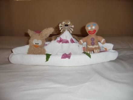 Dekospaß!Auch unsere 3 kleinen Freunde hatten mit den allabendlichen, liebevoll arrangierten Dekos aus Handtüchern ihren Spaß