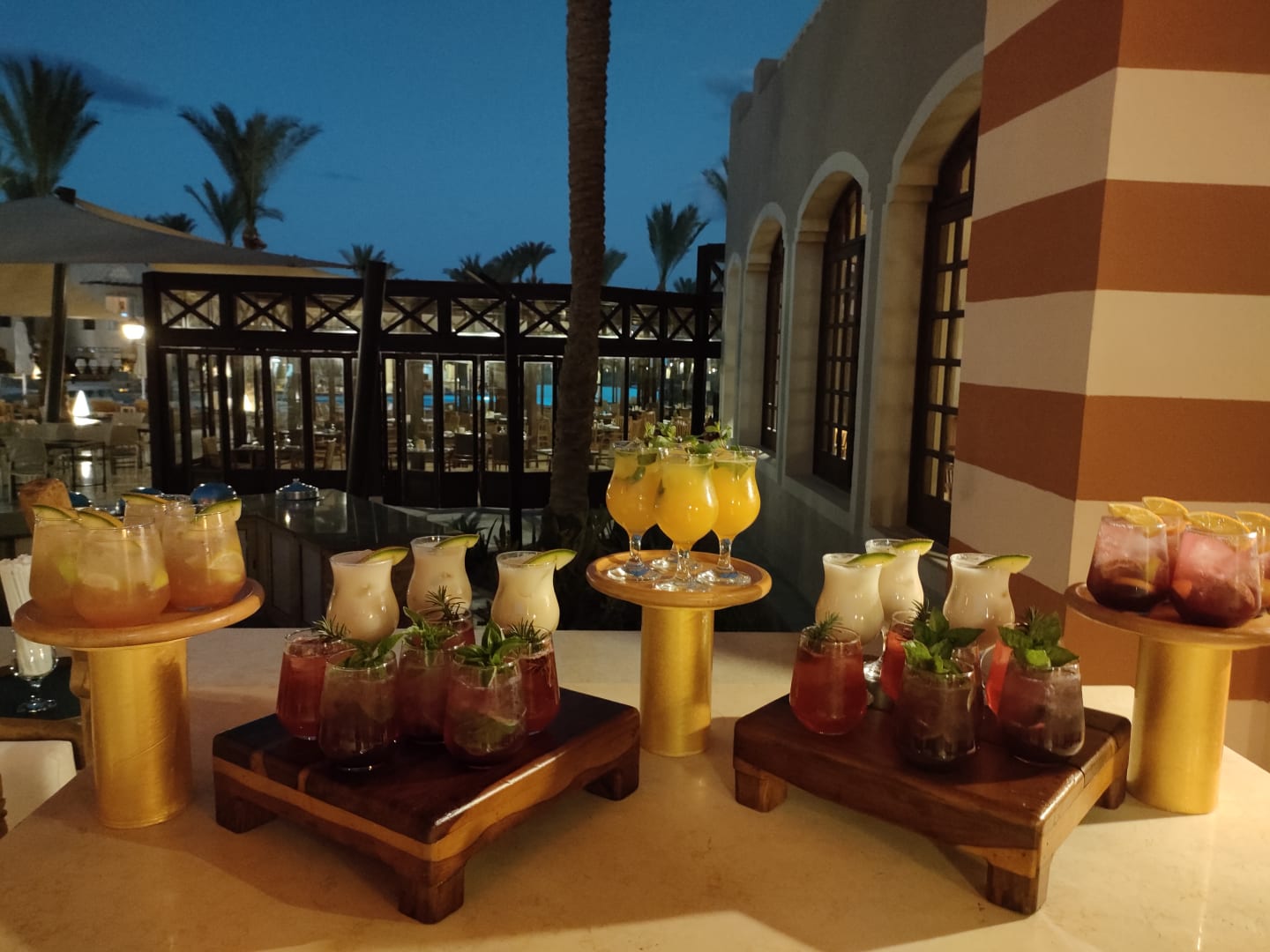 Sehr angenehme Cocktails vor dem Abendessen vor dem Restaurant. Gut gemacht, Mohamed