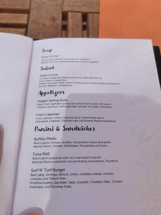 Mittagskarte Poolrestaurant