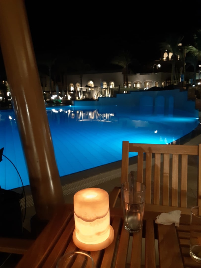 Am Abend beim Essen im Poolrestaurant