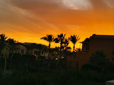 Ausblick vom Balkon. Sonnenuntergang.