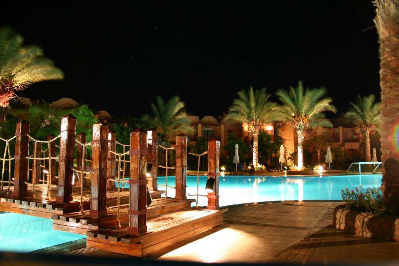 Hotelanlage am Abend