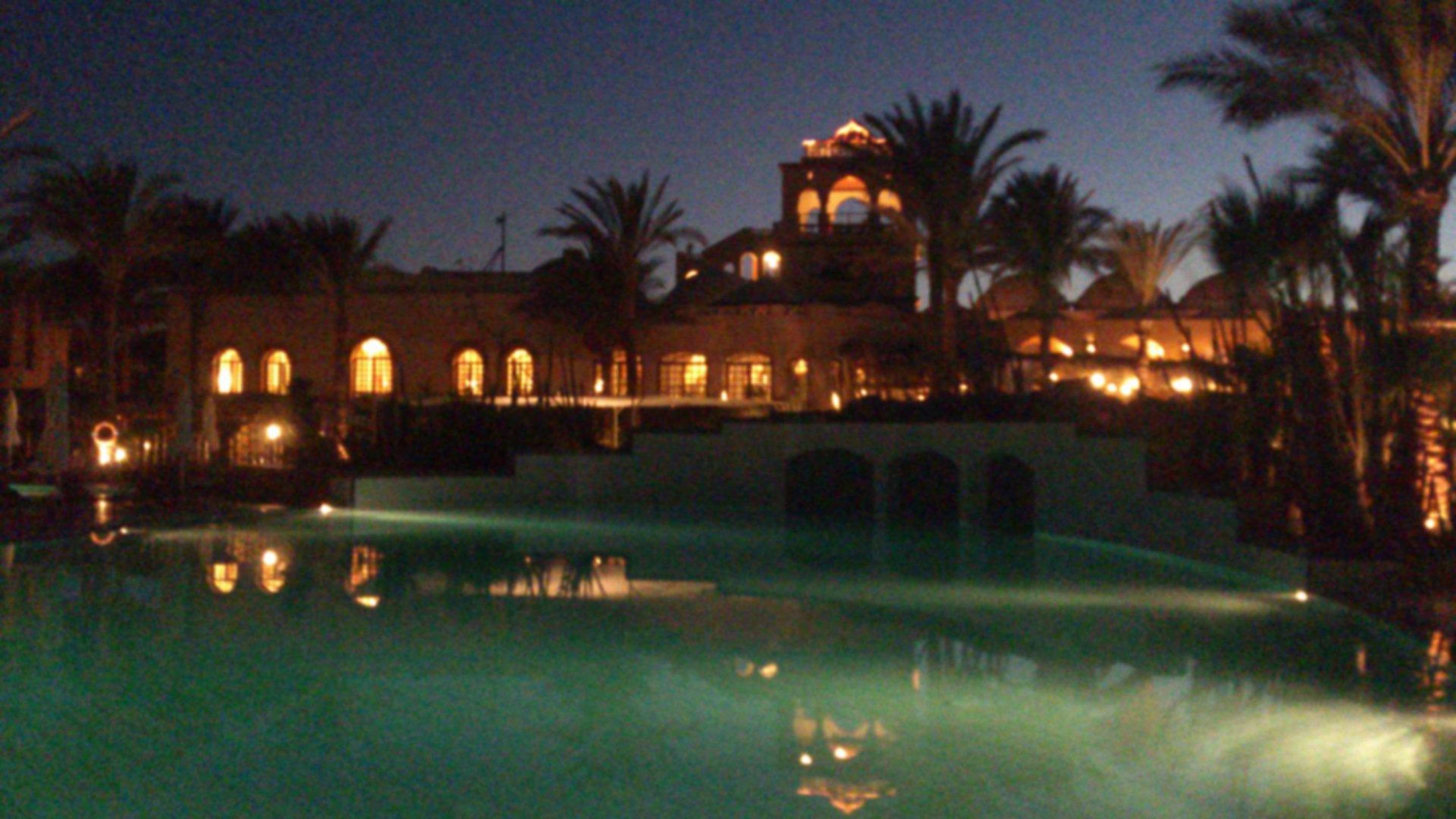 Hotel und Pool bei Nacht