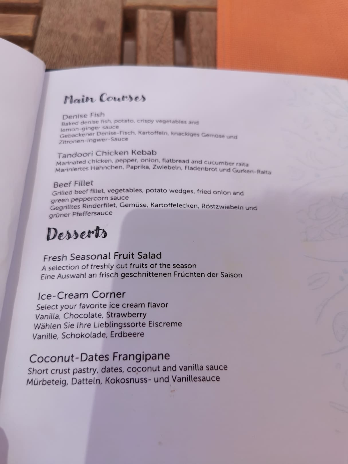 Mittagskarte Poolrestaurant