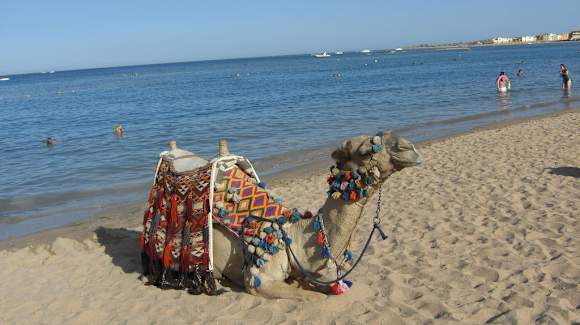 Auch dem Kamel ist es zu heiss und macht Urlaub an der Makadi Bay.