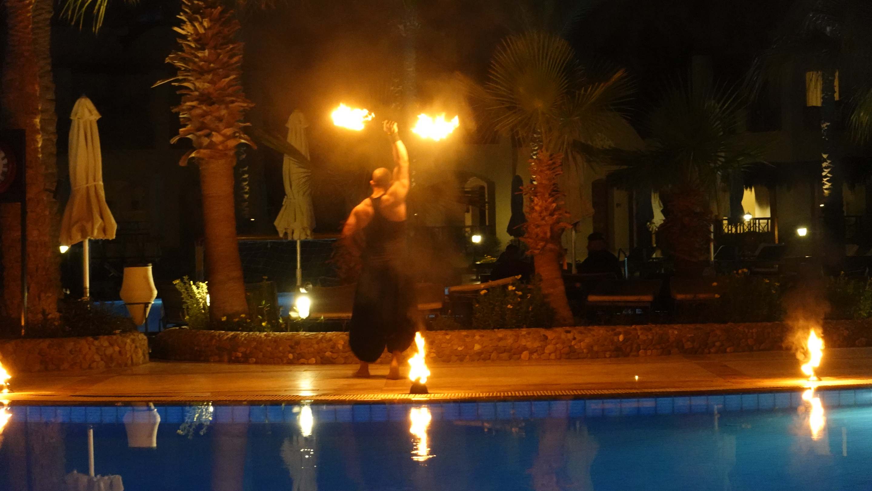 Schöne Feuershow am Pool.