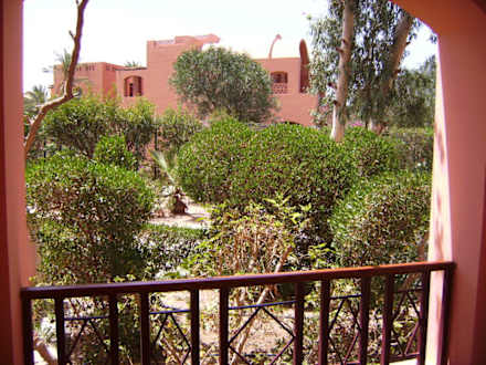 Ausblick von unserem Balkon auf einen teil der wunderschönen Gartenanlage. Im Hintergrund ist das Nachbarhotel SENSIMAR Makadi zu sehen!