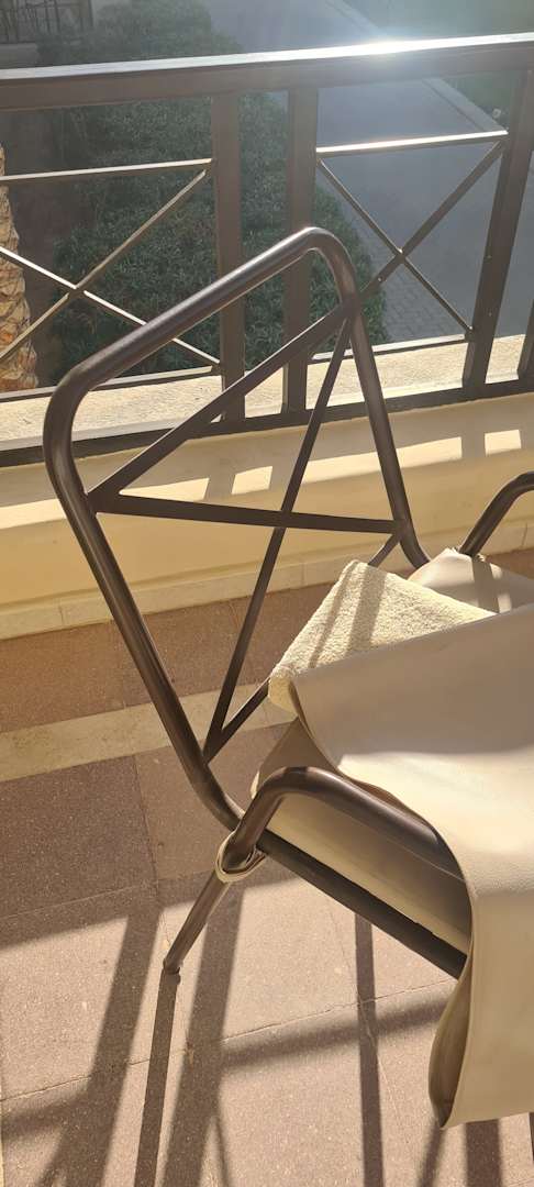 Uralter Terrassenstuhl! Wurde nur eine Leder Husse drübergezogen und das wars. Beim Lesen hält man es mit diesem Ding nicht aus! Handtuch drüber legen.