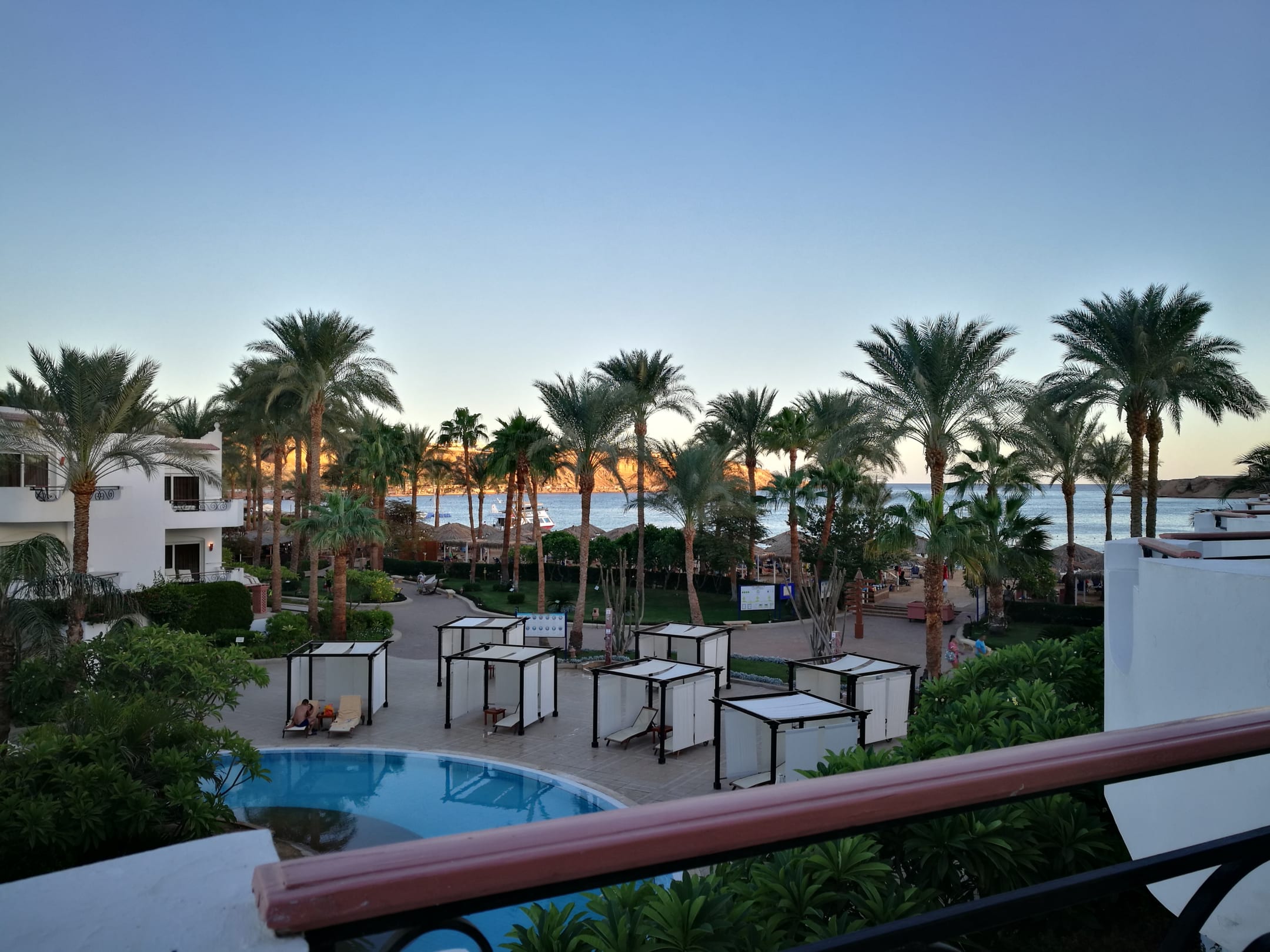 Vom Balkon Blick aufs Meer in der Abenddämmerung!