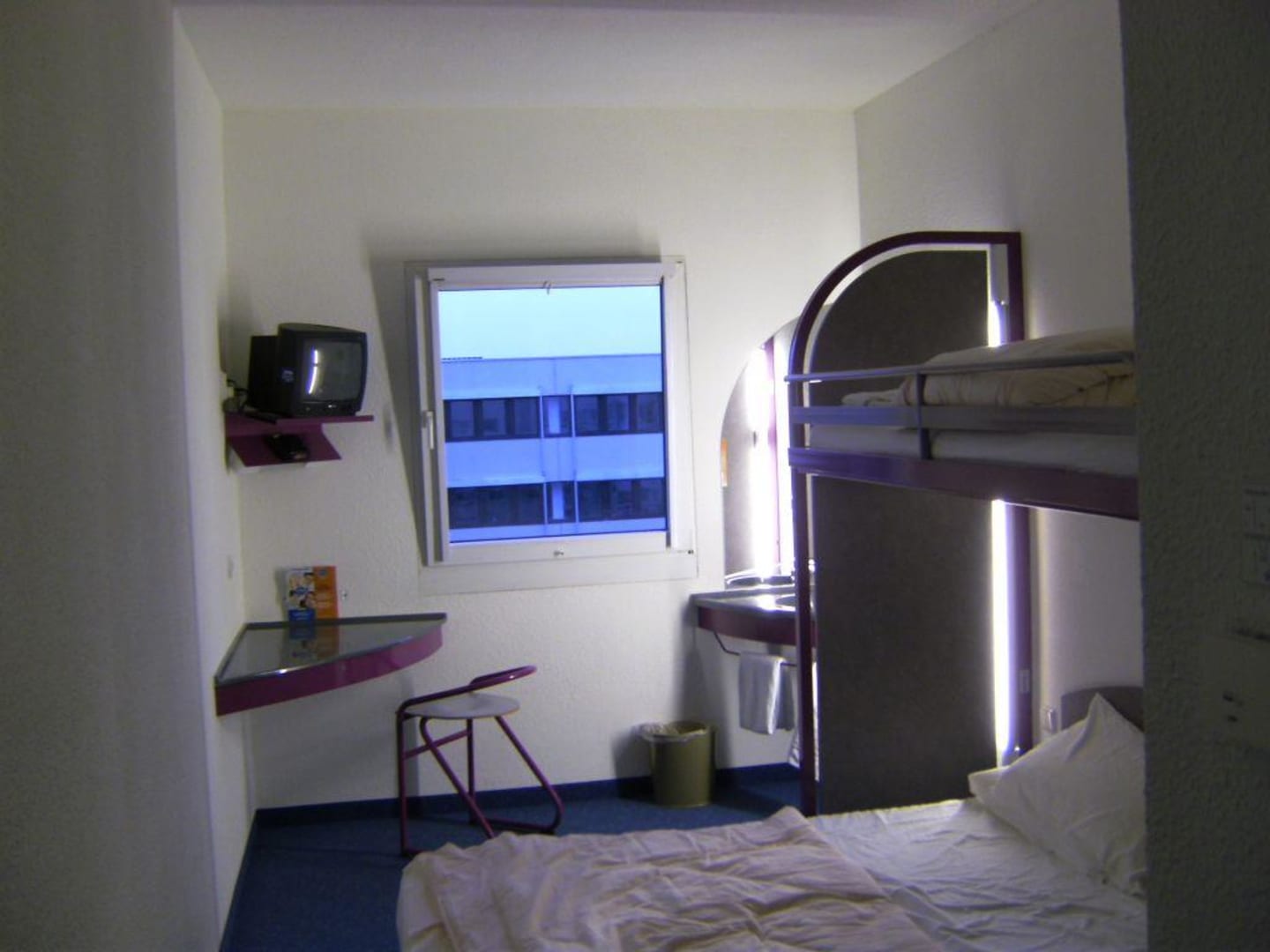 Dieses ist der Blick von der Zimmertüre aus in das Zimmer hinein ( rechts sind dann Dusch- und Toilettenkabine eingesetzt....je nach Zimmernummer sind die Ansichten andersherum)
