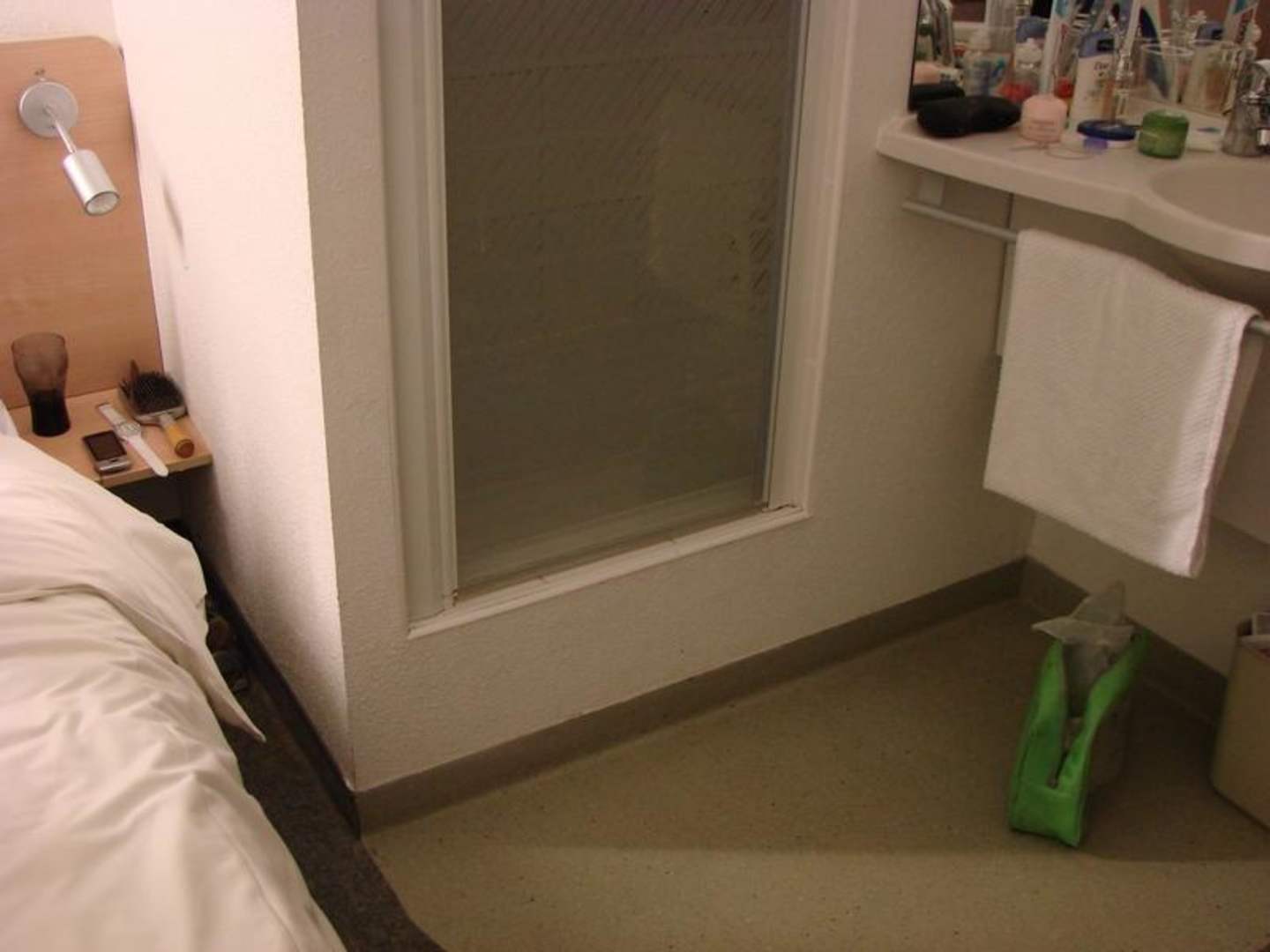 Prysznic, łóżko, umywalka