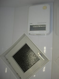 Fenster und Heizofen im Badezimmer