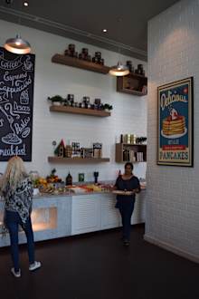 Frühstück in Form eines Buffets. Auch ganz nett dekoriert.