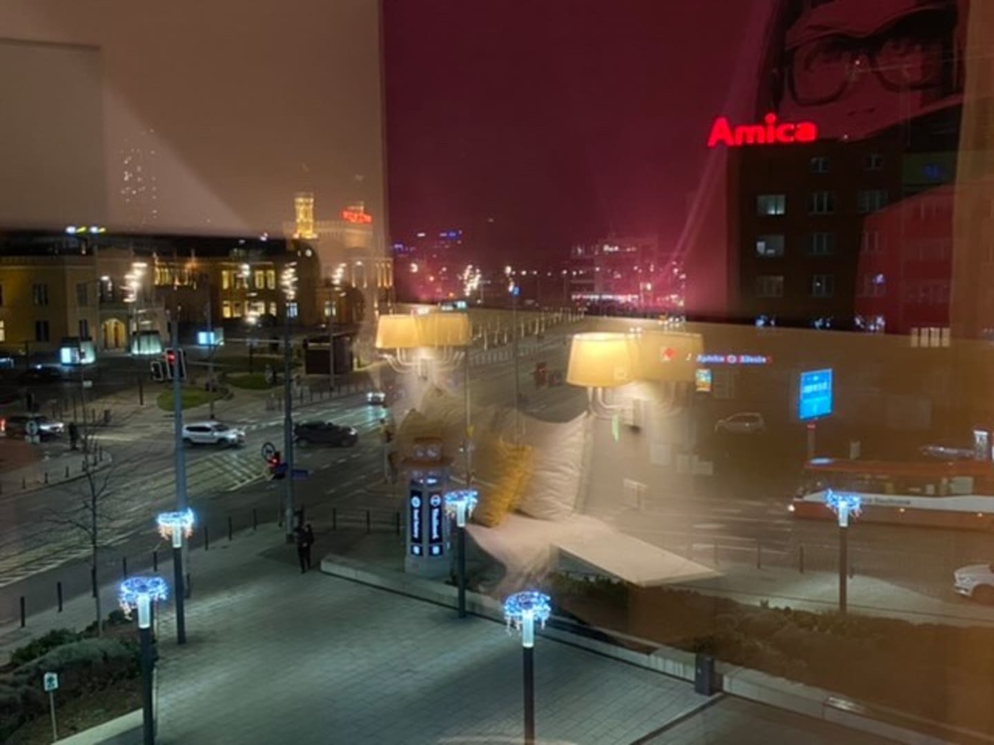 Blick auf die Straße und auf den Hauptbahnhof in Wroclaw