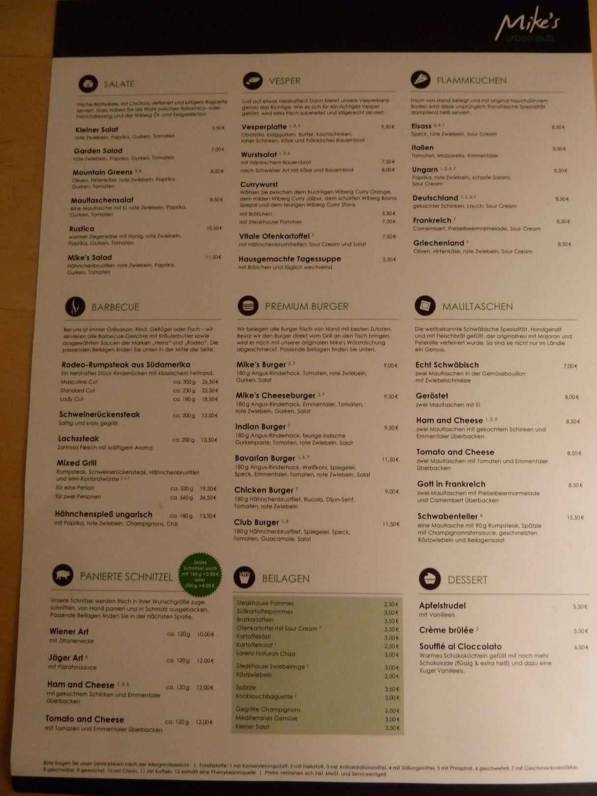 Speisekarte im Restaurant