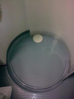 Die Röhre / DuscheDie Dusche ist eine durchsichtige Plastikröhre von 80 cm Durchmesser, hier kommen MRT-Gefühle auf....