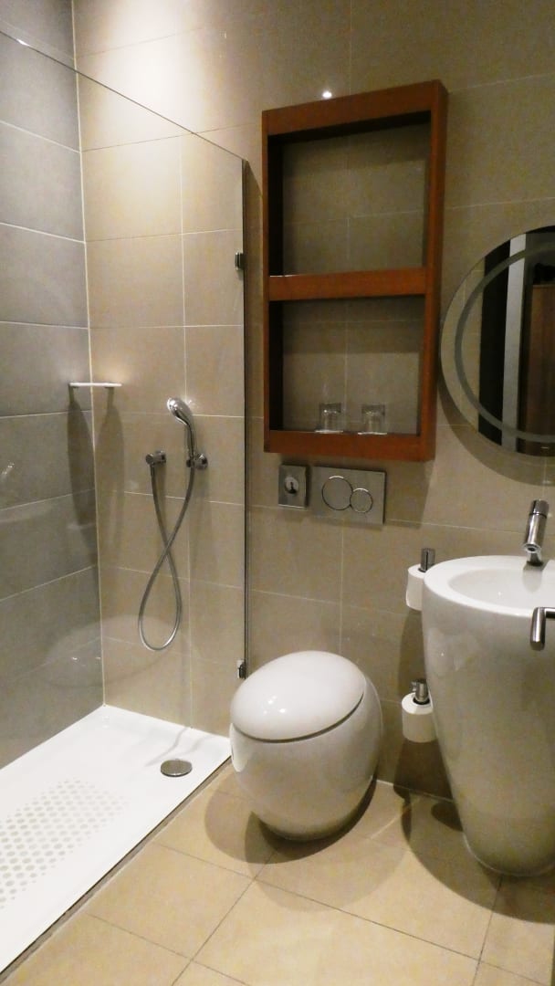Modernes Bad, Spiegel leider nicht gut beleuchtet.