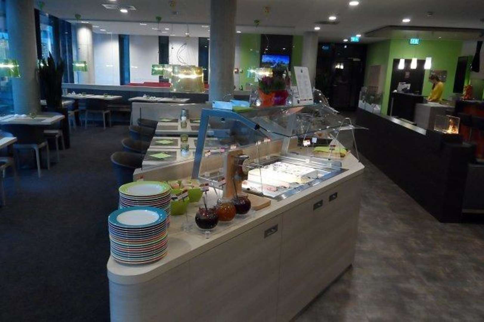 Hier ein Blick auf das kleine Buffet. Im Hintergrund rechts der Empfang und die Bar.