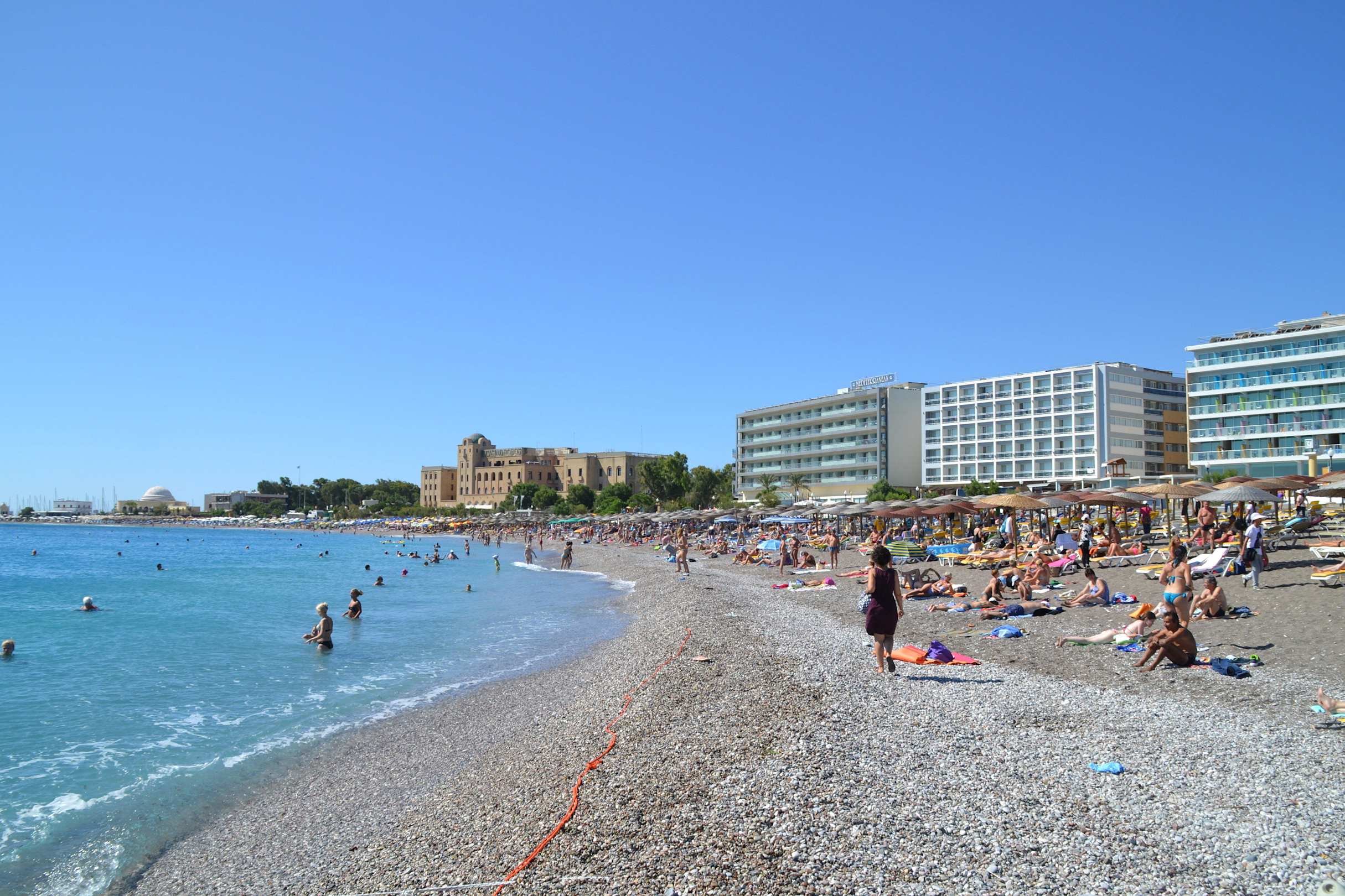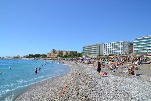 Strand und Hotel im Hintergrund