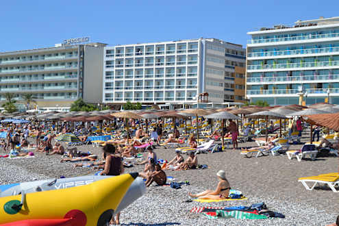 Strand und Hotel im Hintergrund