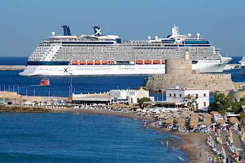Aussicht vom Hotel Ibiscus auf Rhodos Hafen.