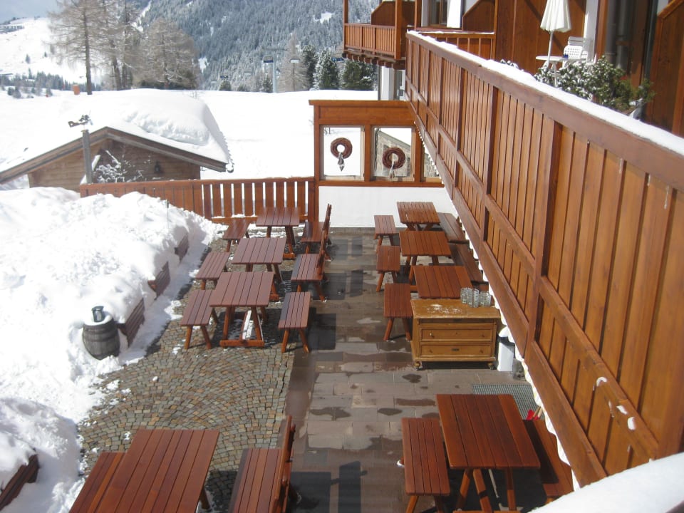 Blick vom Balkon auf die Restaurant-Terrasse