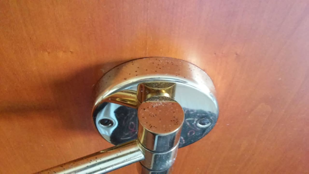 ... Befestigung der Lampe über dem Bett ...
