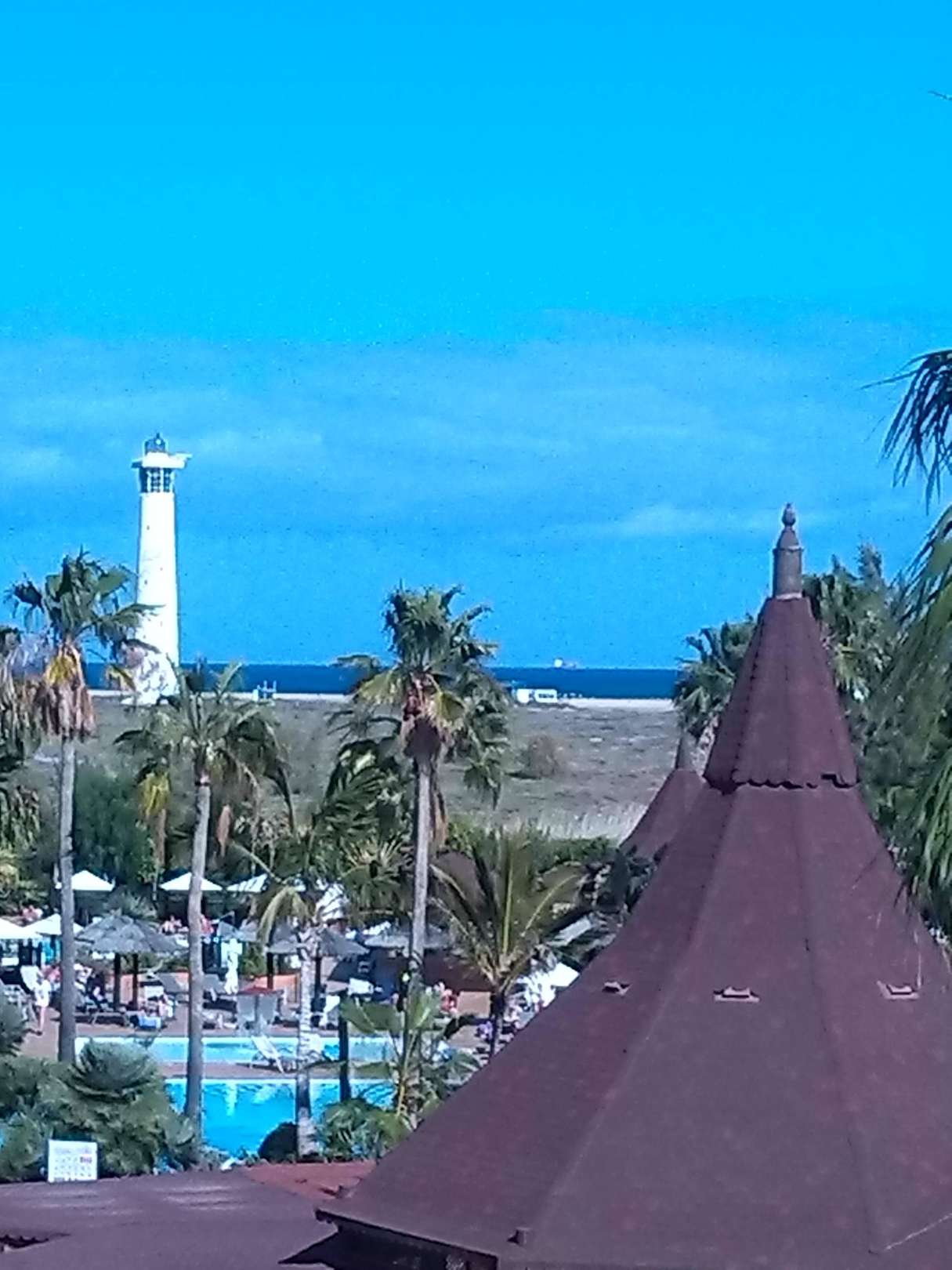 Blick über Poolanlage zum Meer
