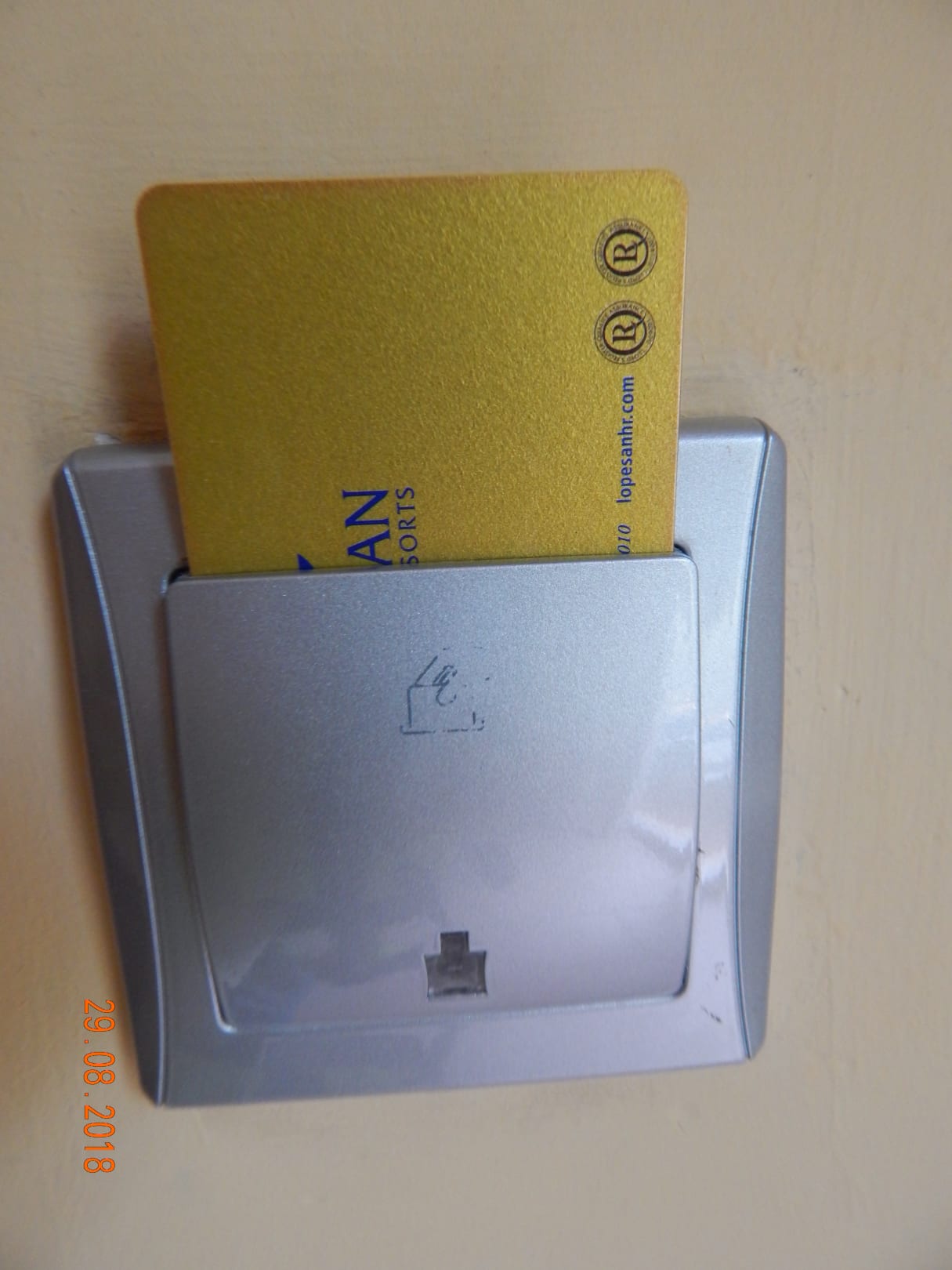 Die goldene Karte wurde am Anfang reingesteckt und blieb auch bis zur Abreise dort , Damit wurde nicht nur das Licht sondern auch ein Minni Kühlschrank und die Klimaanlage betrieben .