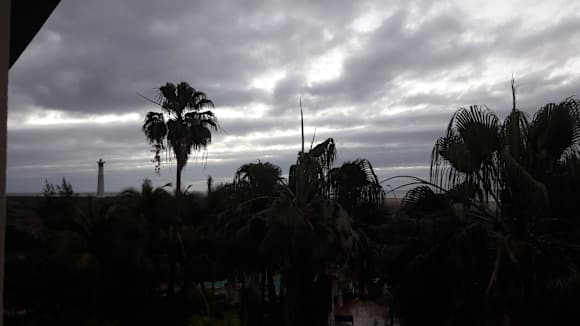 Blick vom Zimmer auf Regenwolken