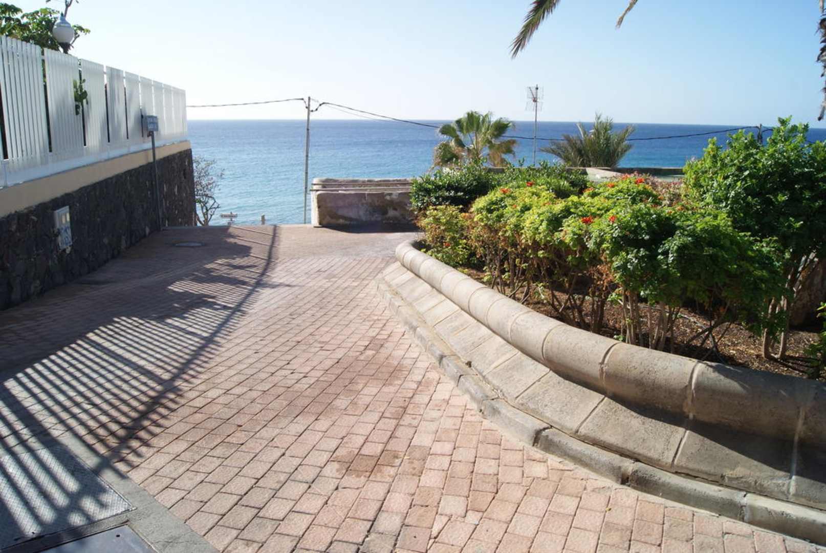 Links ist der Eingang. Weg zum Strand und zur Promenade (über Treppe).