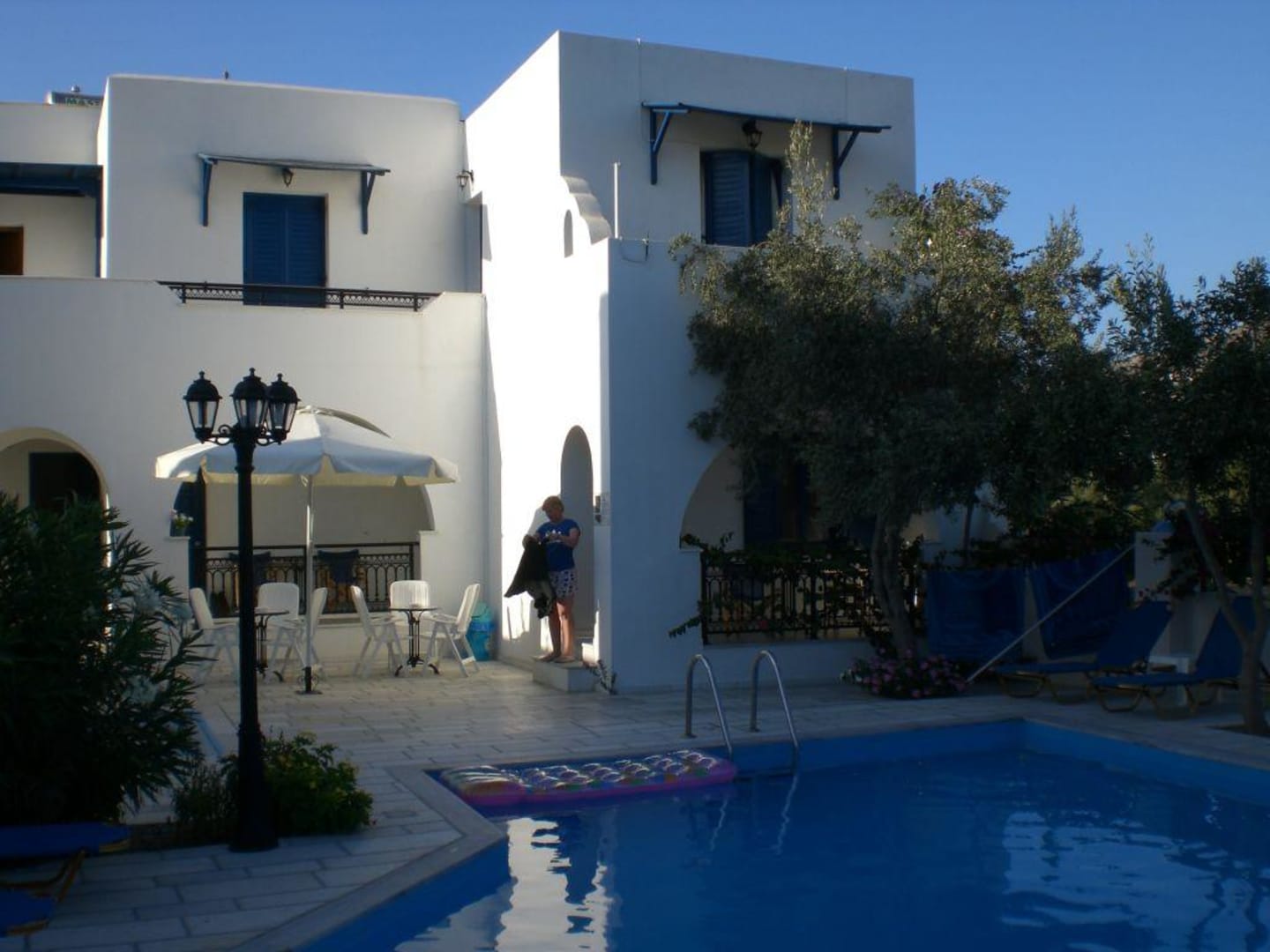 Appartement ikaros studios gezien vanaf zwembadons appartement begane grond verscholen achter de olijfboom