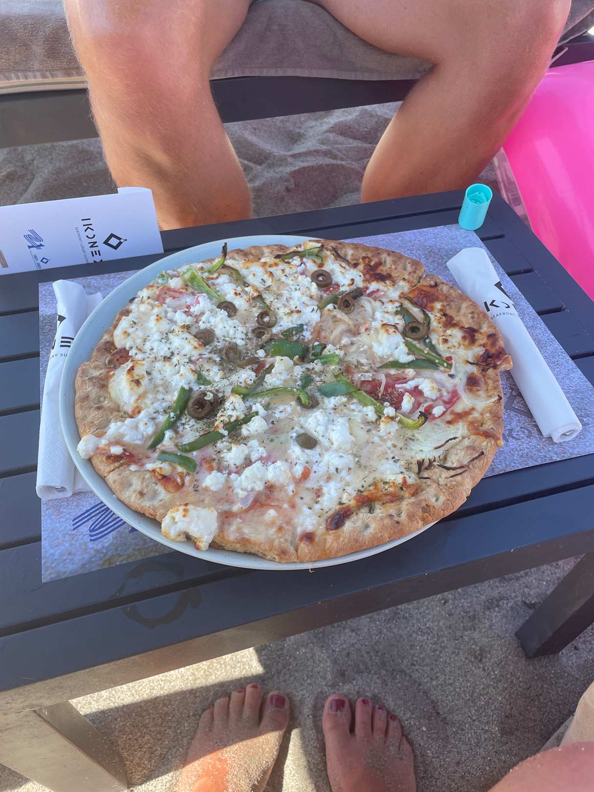 Griechische Pizza am Strand