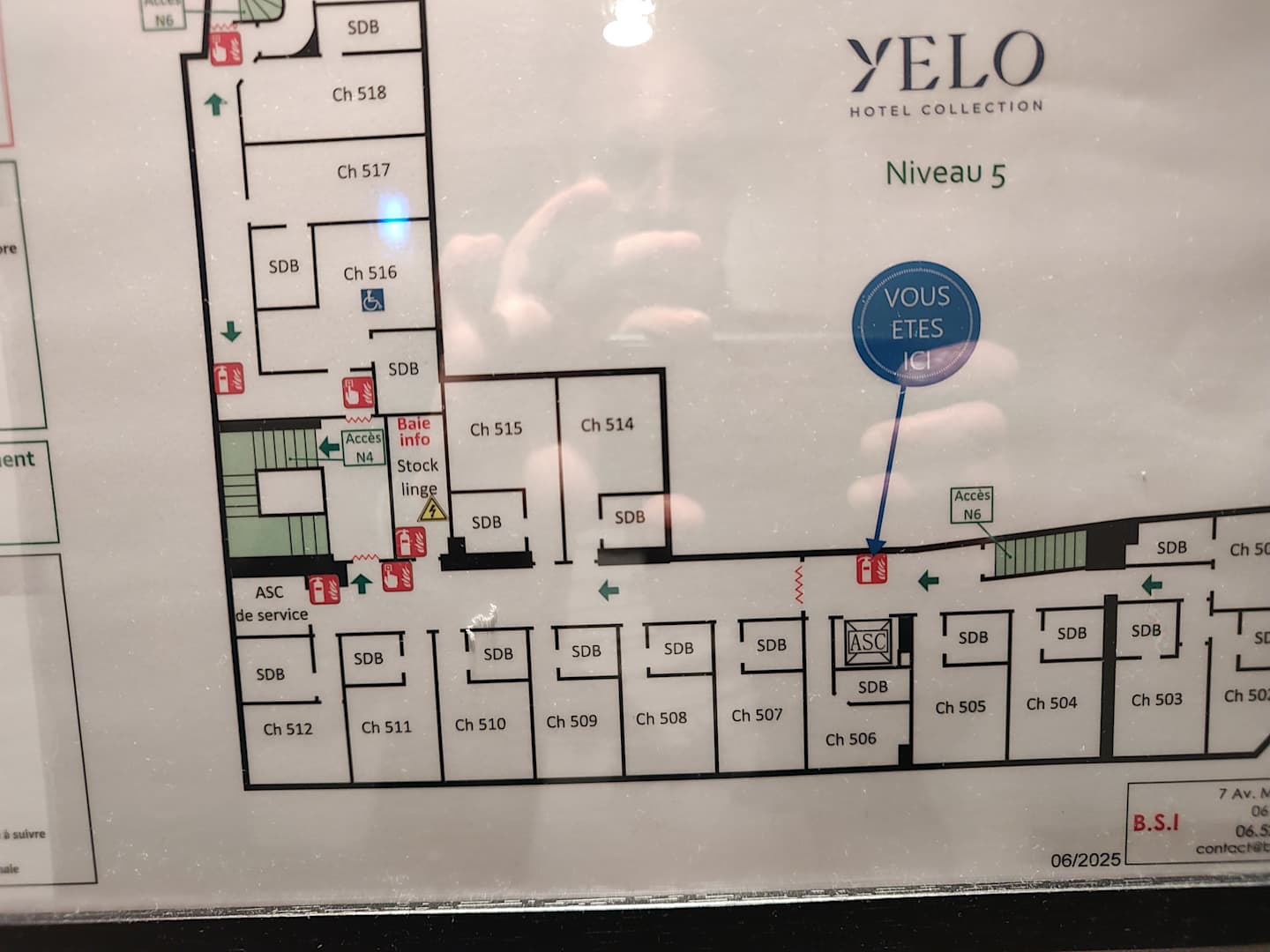 SonstigesZimmerplan am Beispiel 5. Stock. Zimmer 501 bis 512 liegen zur Bahnlinie, 514 ff zum Innenhof