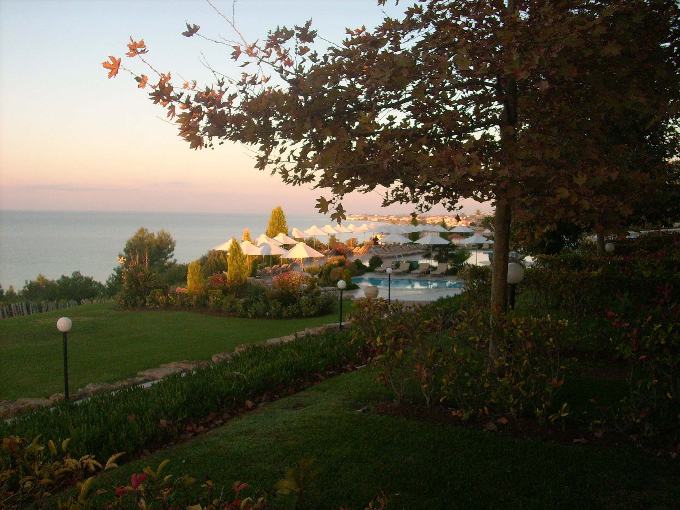 Aussicht von der Terrasse aus zum Meer und Pool
